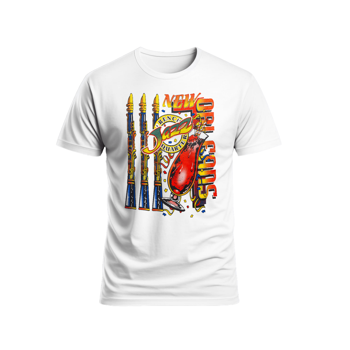 Celebrate the vibrant spirit of New Orleans in this bold and colorful French Quarter Jazz & Hurricane Drink T-Shirt. Designed with eye-catching artwork featuring classic jazz instruments, a famous Hurricane cocktail, and bright festival-style lettering, this tee captures everything locals and visitors love about The Big Easy.