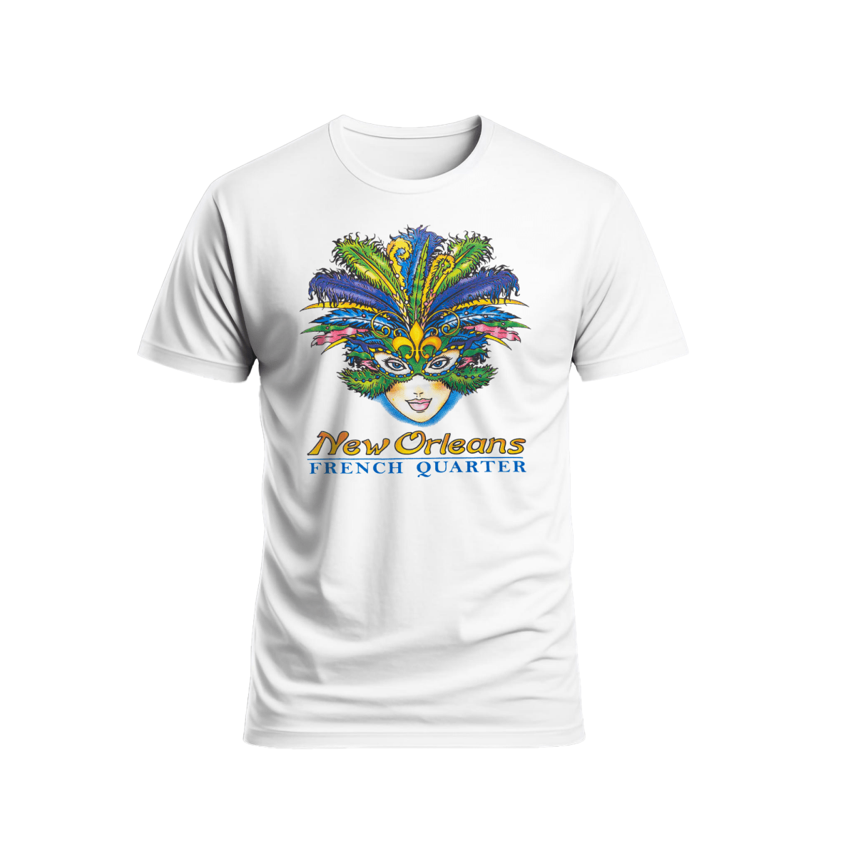 Celebrate the vibrant spirit of New Orleans with this stunning Feather Mask Mardi Gras T-Shirt! Featuring a beautifully detailed masquerade mask design with bold feathers and rich Mardi Gras colors, this tee captures the magic, culture, and festivities of the French Quarter.