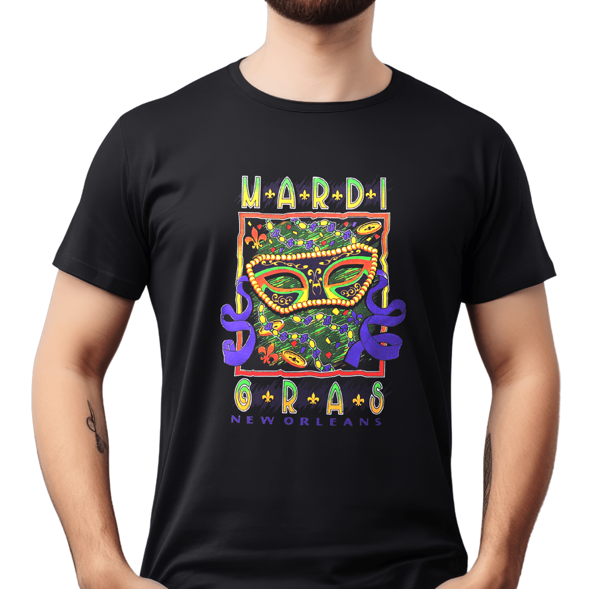 Celebrate the vibrant spirit of Mardi Gras with this Adult Unisex Mardi Gras Confetti Mask Black Tee-Shirt. This stylish t-shirt features a bold and colorful design inspired by the festive masks and confetti-filled parades of New Orleans. Perfect for expressing your Mardi Gras spirit and standing out at any celebration.
