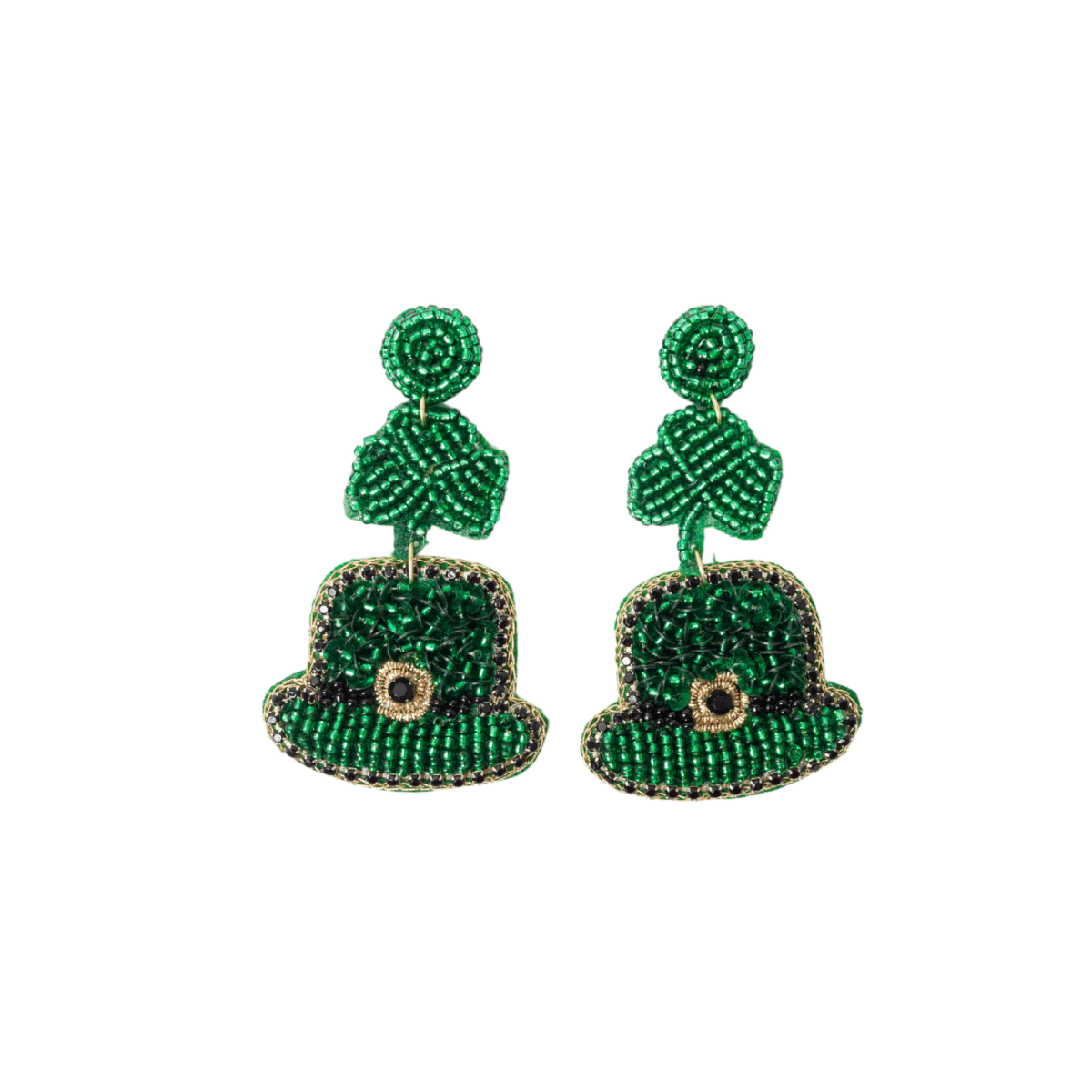 Bring luck and sparkle to your outfit with these Beaded Leprechaun Hat Statement Earrings—a must-have for St. Patrick’s Day celebrations!