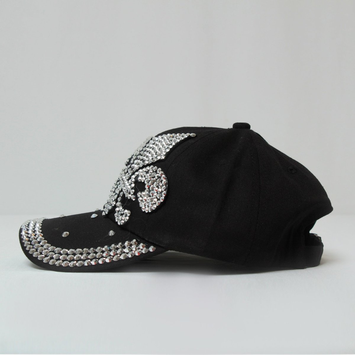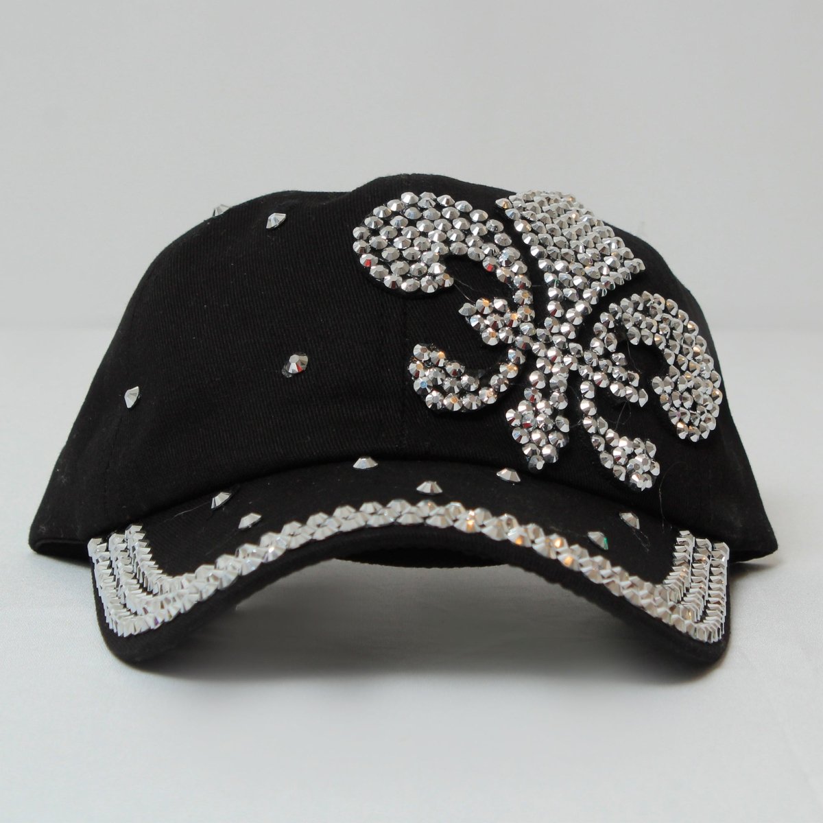 Black Silver Fleur De Lis Rhinestone Embellished Hat