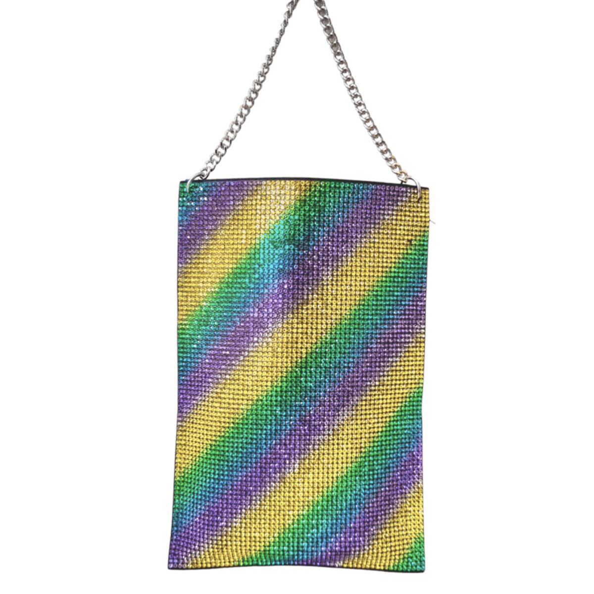 Bling Rhinestone Mardi Gras Crossbody Bag Cell Phone ID Holder