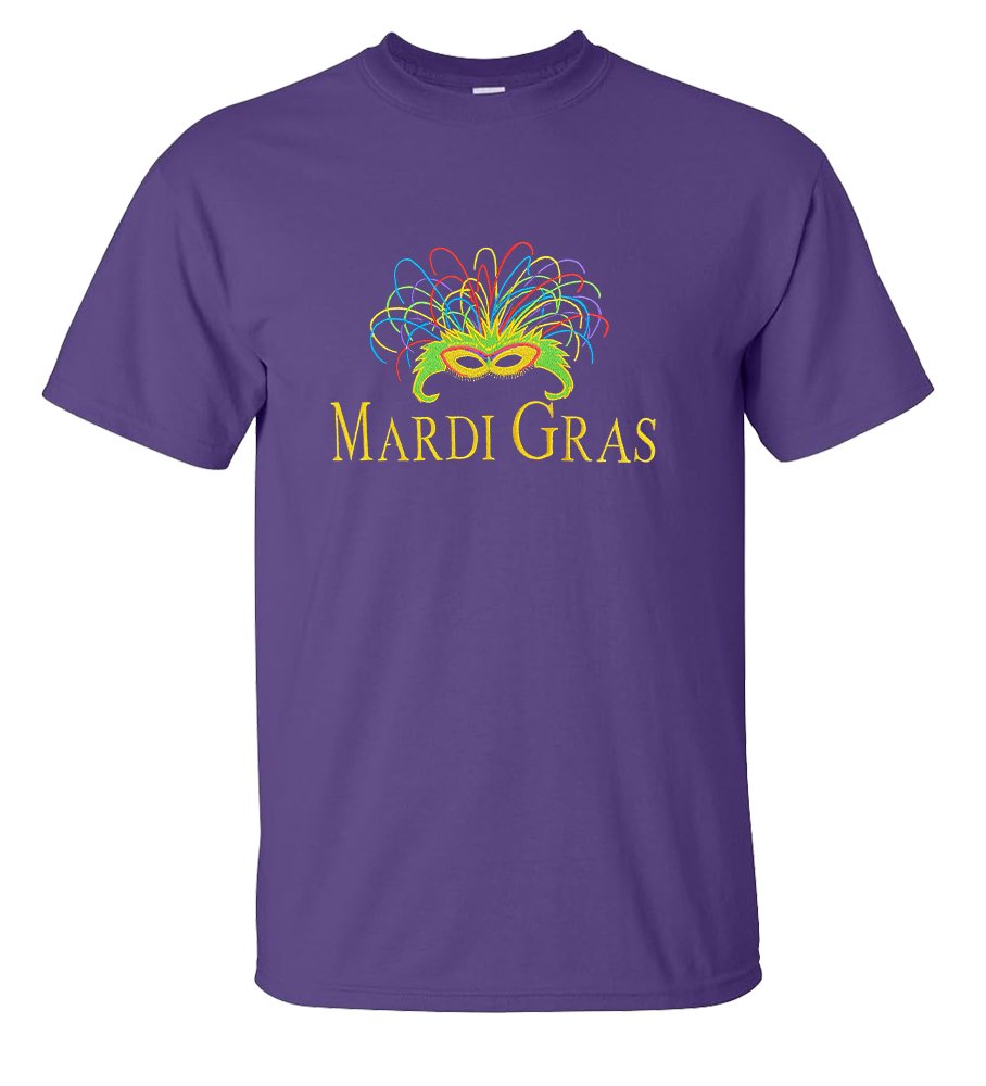 Versatile Style: Whether you're attending a masquerade ball or simply want to express your love for Mardi Gras, this embroidered tee effortlessly combines style with the playful spirit of the celebration.