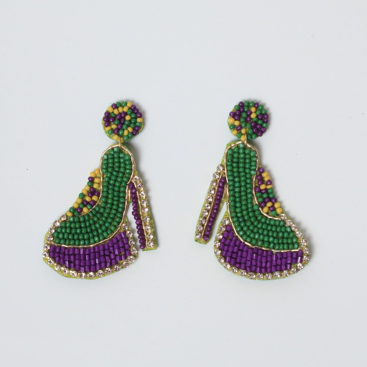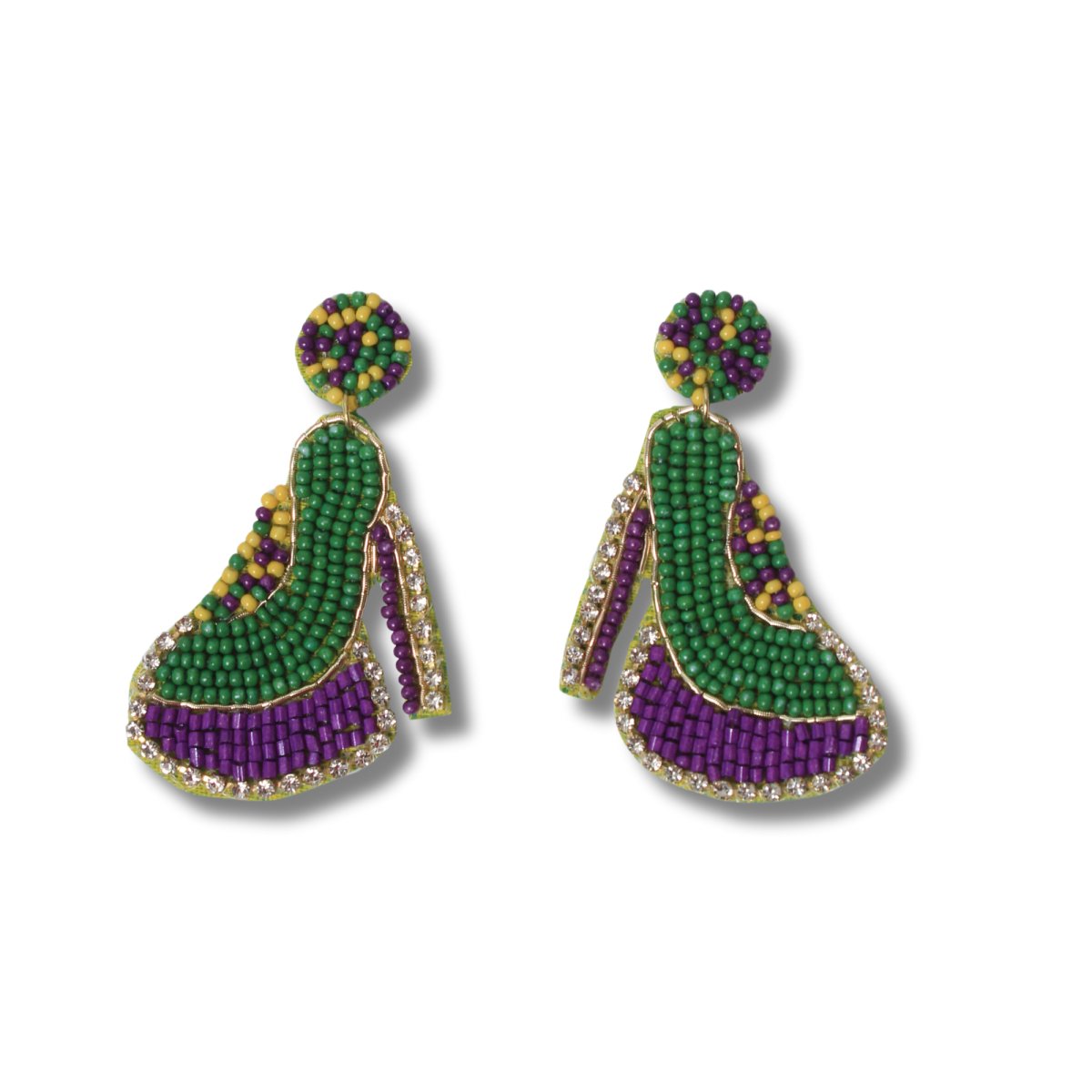High Heel Beaded Mardi Gras Earrings with Rhinestones