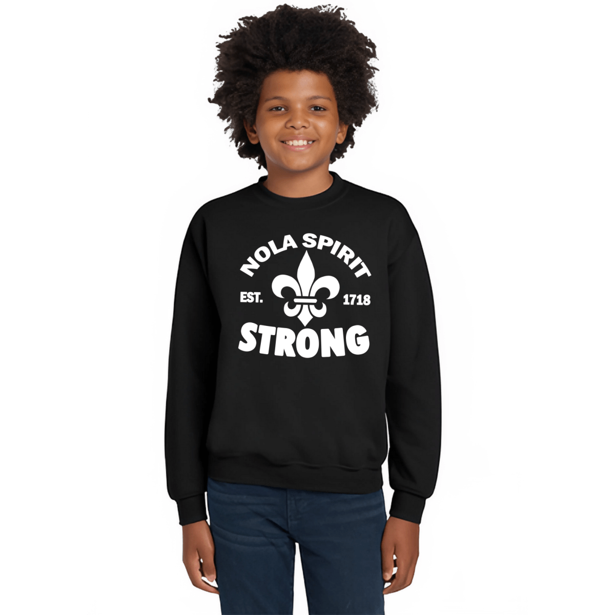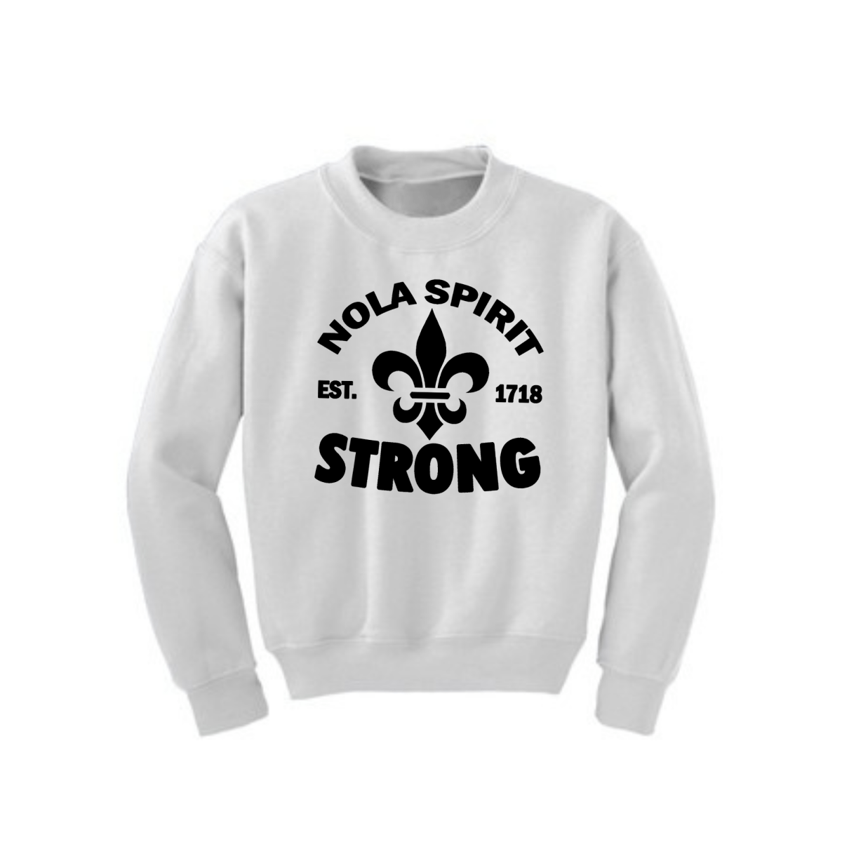 Show your support for New Orleans with the "NOLA Spirit Strong" Long Sleeve Sweatshirt. This shirt represents unity, resilience, and hope for our beloved city.