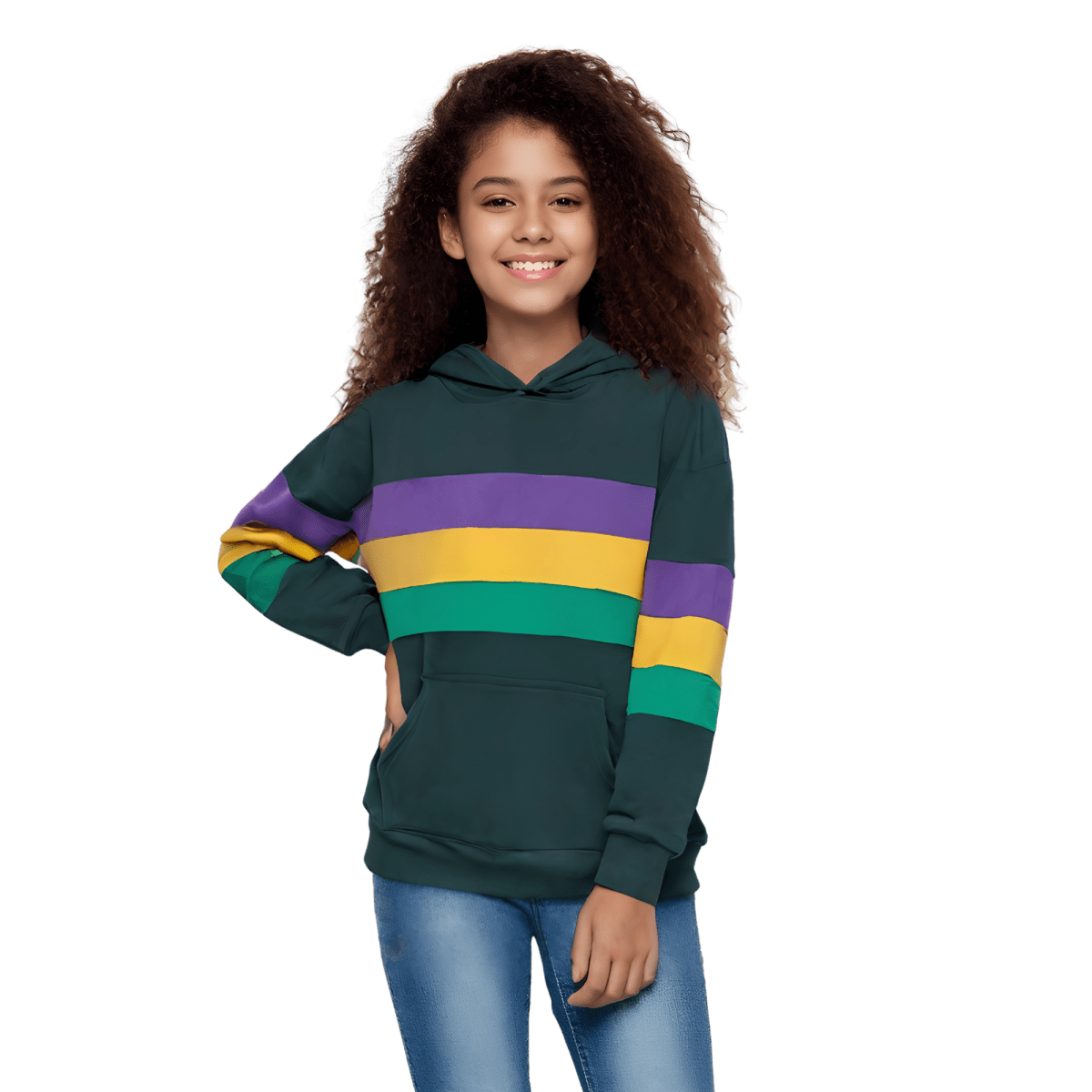Mardi Gras Kids Black Hoodie Striped With Purple, Gold, Green: