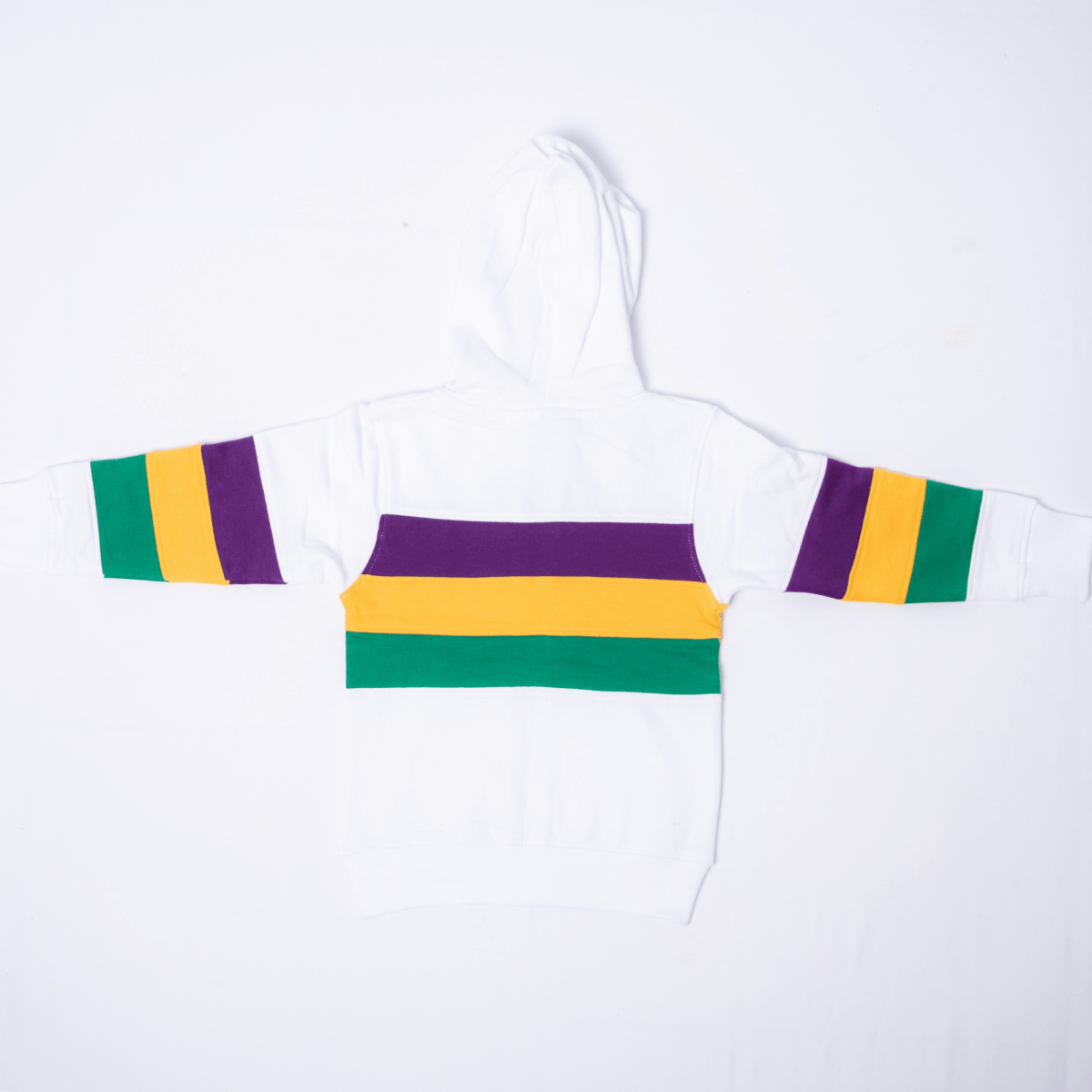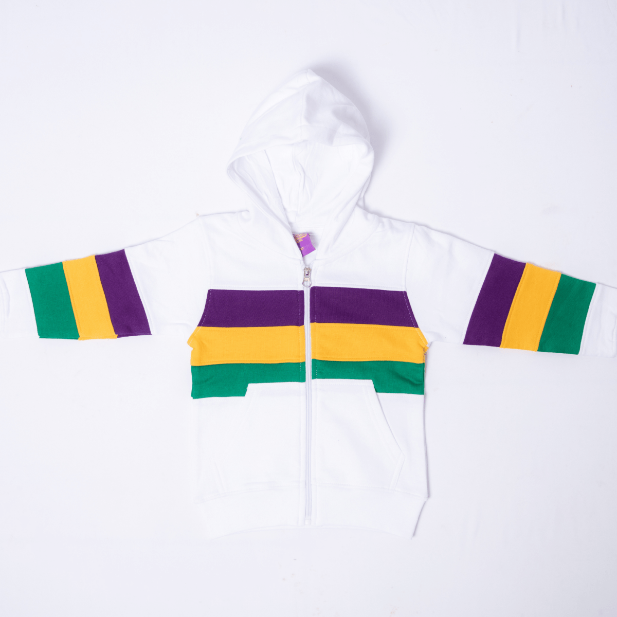 Kids Mardi Gras Zipper Hoodie - White with Purple, Green, & Gold Stripes