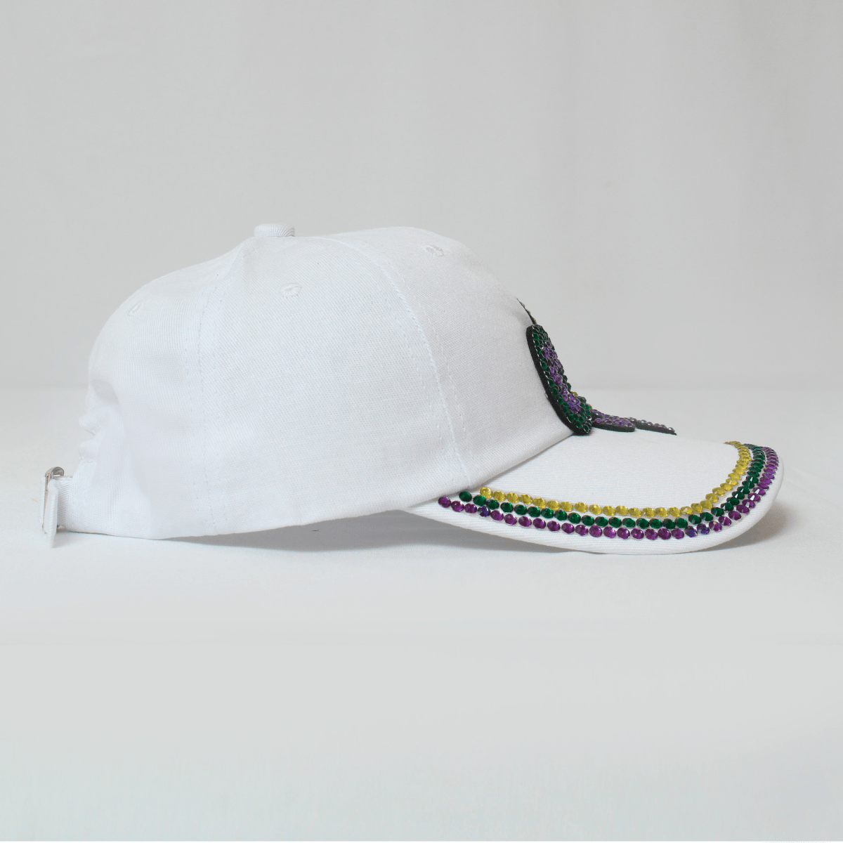 Mardi Gras Adjustable Hat with Rhinestone Fleur-de-Lis White