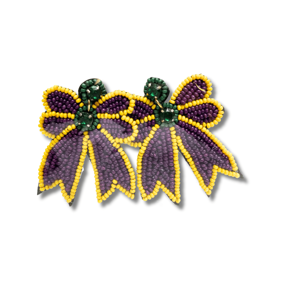 Stand out and celebrate in style with these stunning Mardi Gras bow earrings—the perfect finishing touch for your festive outfit!