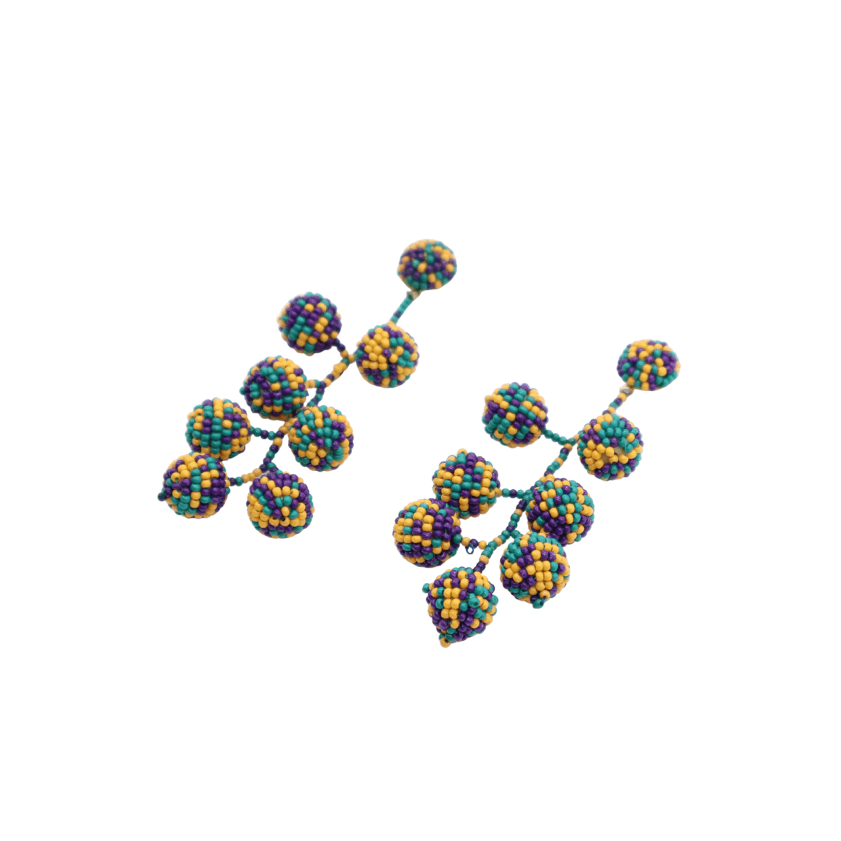 Bring the vibrant energy of New Orleans to your look with our Mardi Gras Beaded Drop Earrings in Purple, Green & Gold. These handcrafted earrings feature cascading strands of colorful beads, each ball meticulously wrapped in festive hues representing the heart of Mardi Gras — purple for justice, green for faith, and gold for power. Their lightweight design ensures comfort, while the playful movement of the beads adds a touch of fun and sparkle to any outfit. Perfect for parades, parties, or casual celebrations, these earrings are a must-have accessory for Mardi Gras lovers. Pair them with your favorite Carnival headband or statement necklace to complete your festive look. Whether you’re celebrating Fat Tuesday or adding a pop of color to your wardrobe, these earrings embody the joyful spirit of Mardi Gras in every detail.