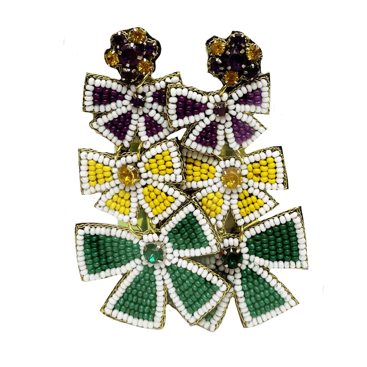 Mardi Gras Beaded Multi-Bow Drop Earrings