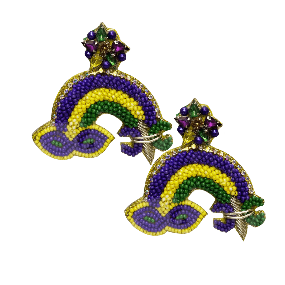 Mardi Gras Beaded Rainbow & Mask Earrings