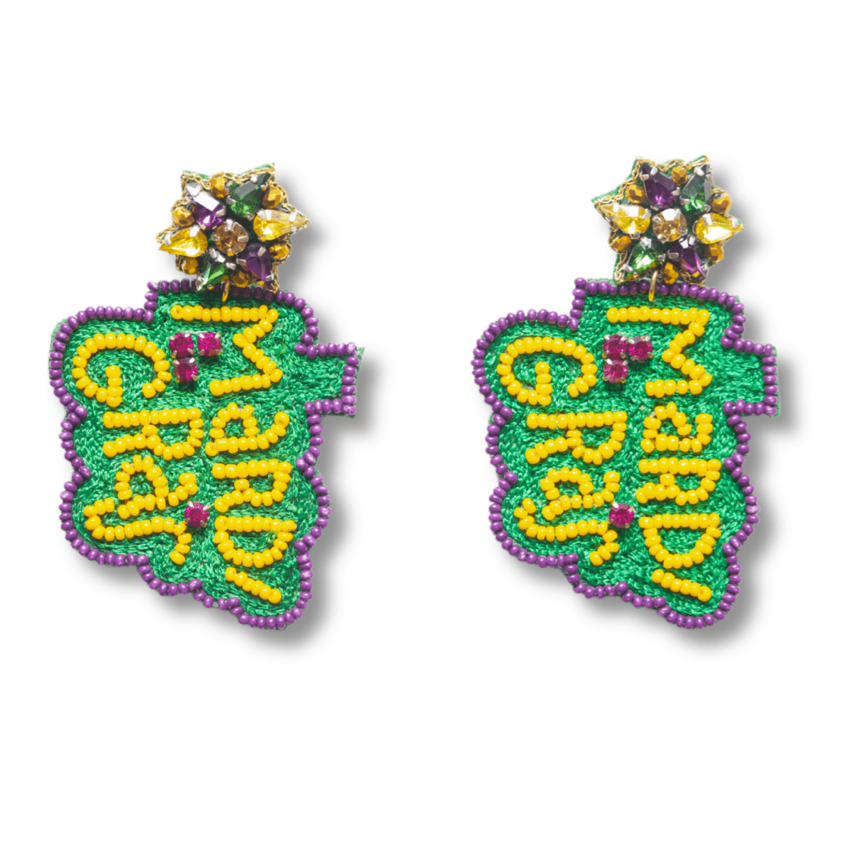 These Mardi Gras Beaded Statement Earrings are the perfect accessory to elevate your carnival look. Pair them with colorful outfits, festive masks, or matching beaded necklaces to fully embrace the Mardi Gras spirit. Ideal for parades, parties, or themed events!