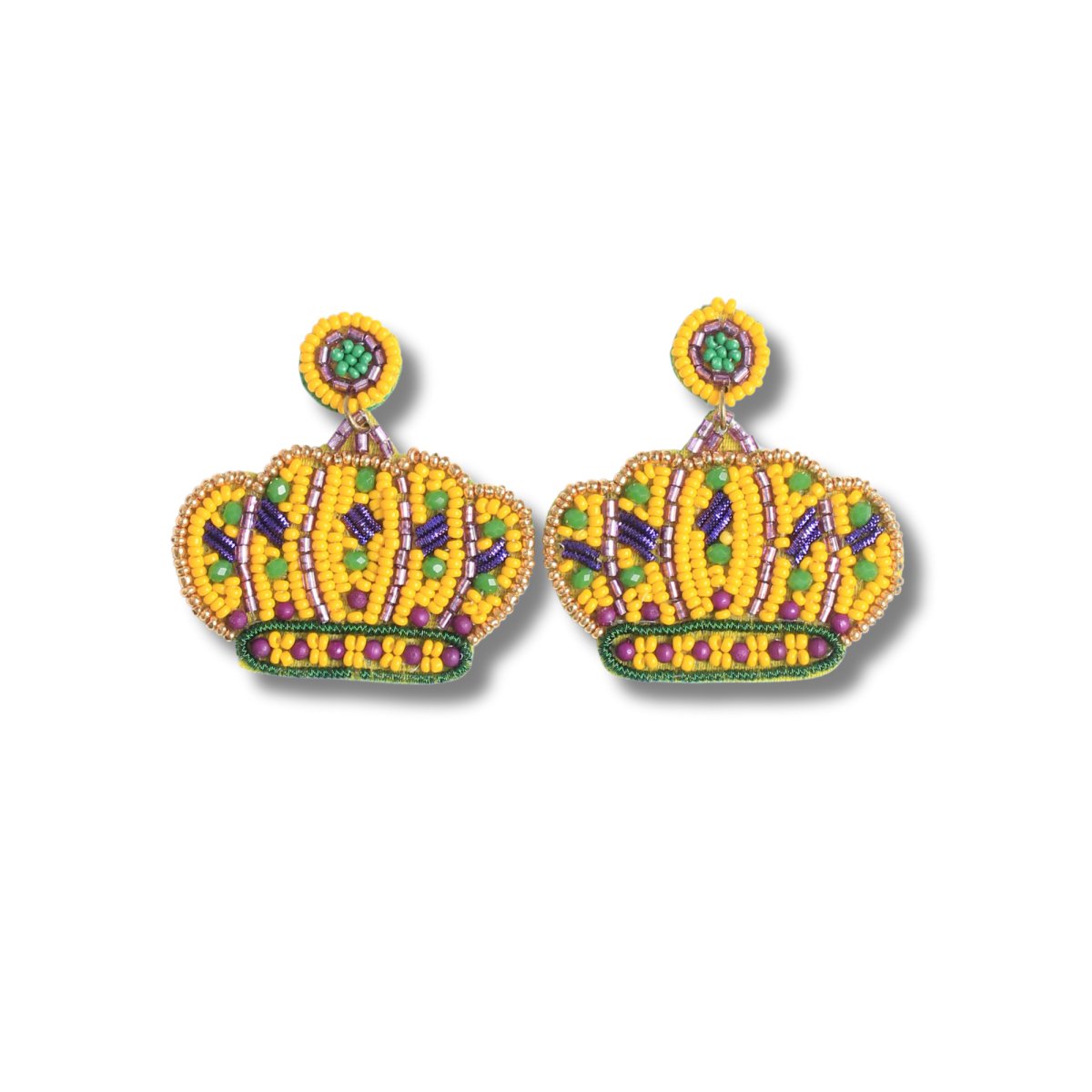 Step into the Mardi Gras spirit with these dazzling Mardi Gras Crown Beaded Drop Earrings. Shaped like a royal crown, these earrings are intricately designed with vibrant beads in traditional Mardi Gras colors—purple, green, and gold. Perfect for adding a regal touch to your festive attire, they make a bold statement at parades, parties, or any carnival celebration. Lightweight and comfortable, these earrings are an ideal accessory for anyone looking to embrace the Mardi Gras season in style!