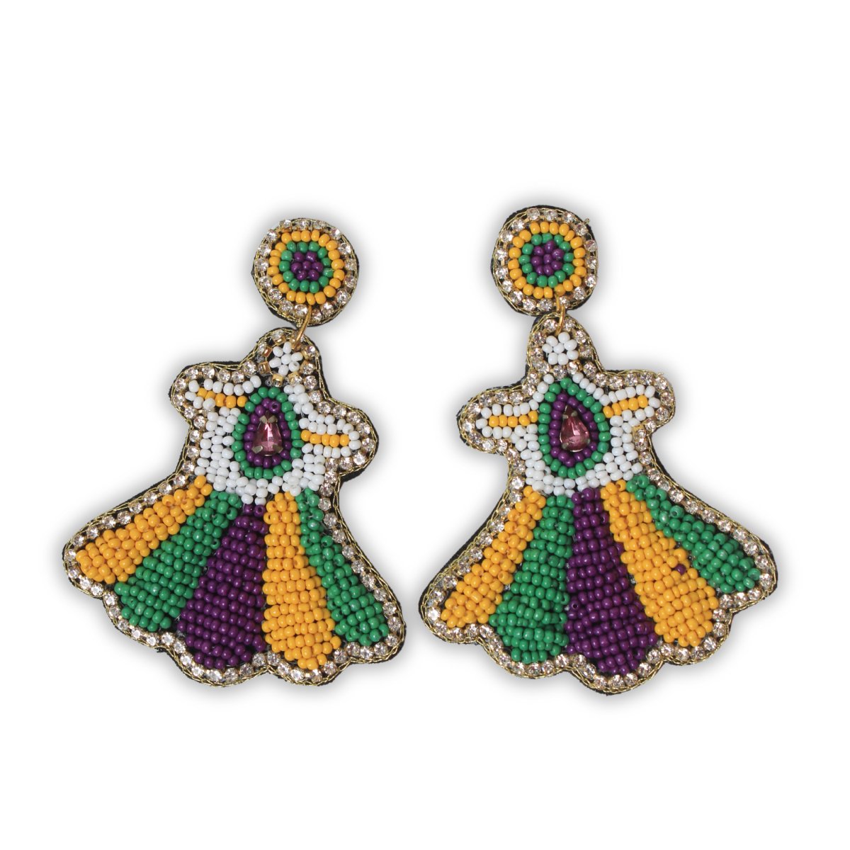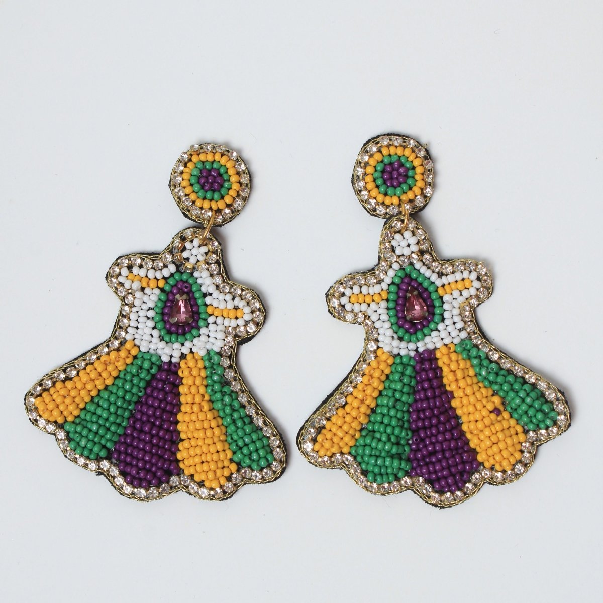 Mardi Gras Dress-Shaped Beaded Earrings with Rhinestones