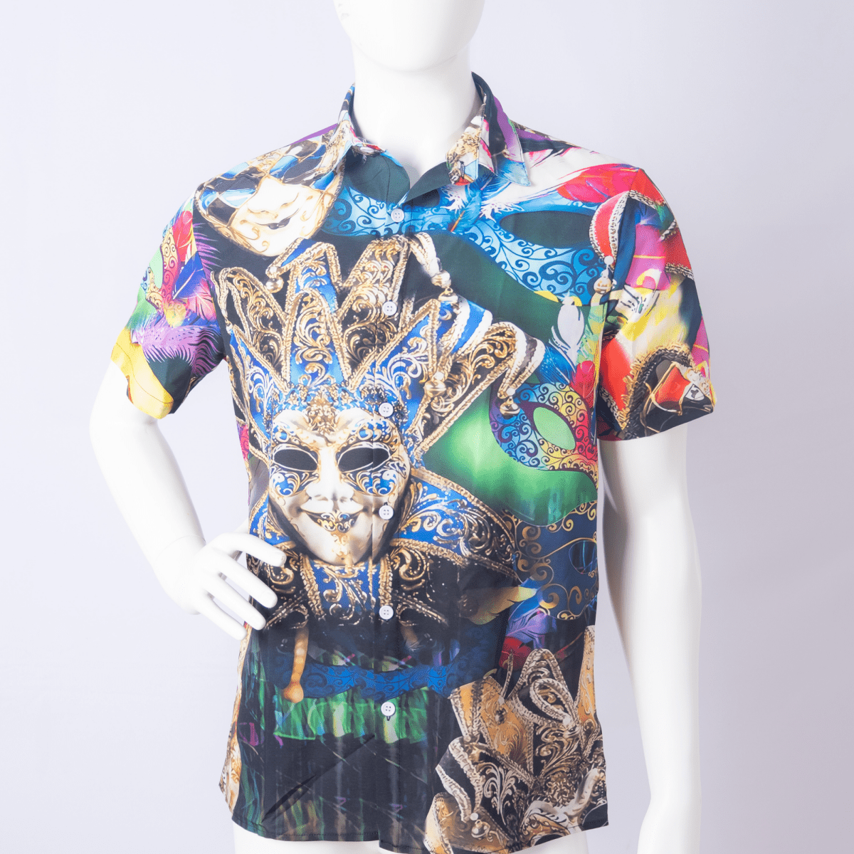Mardi Gras Festival Mask Collage Short Sleeve Button-Up Shirt - Mardi Gras Apparel