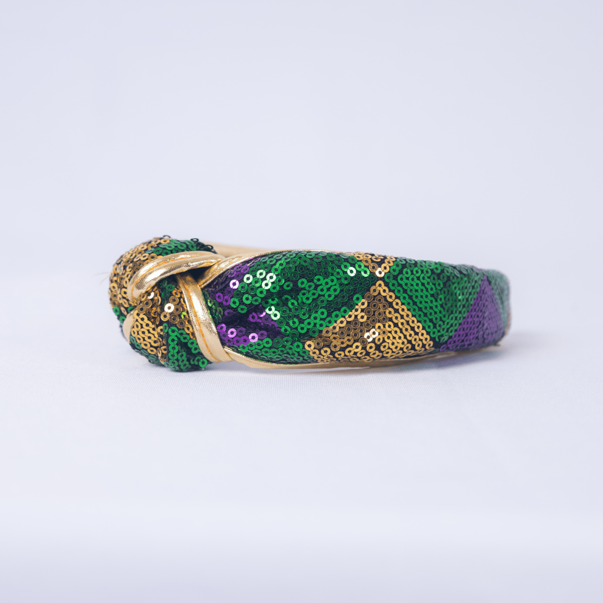 Mardi Gras Harlequin Sequin Headband - Purple, Green, and Gold Diamond Pattern: