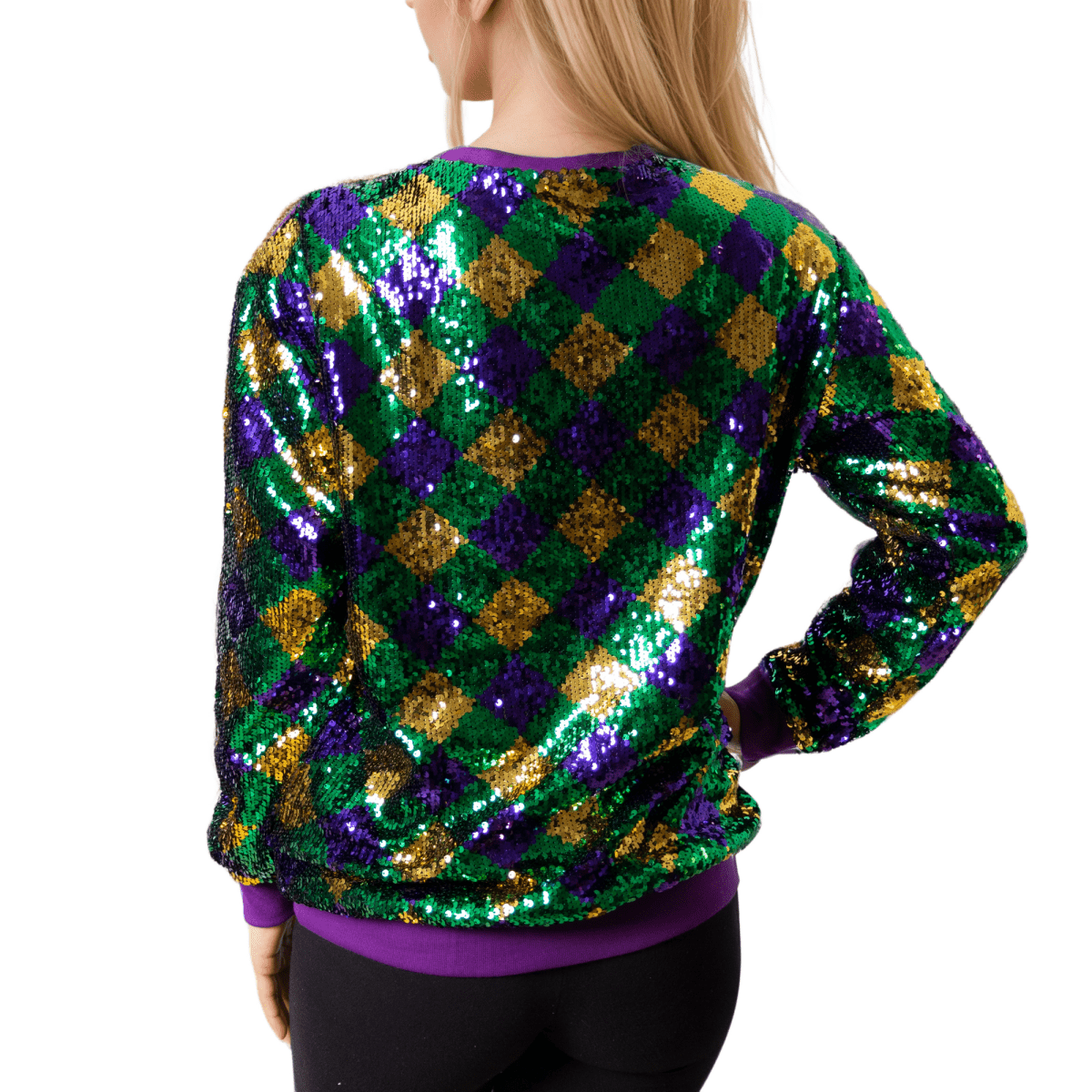 Mardi Gras Harlequin Sequin Sleeve Sweatshirt - Mardi Gras Apparel