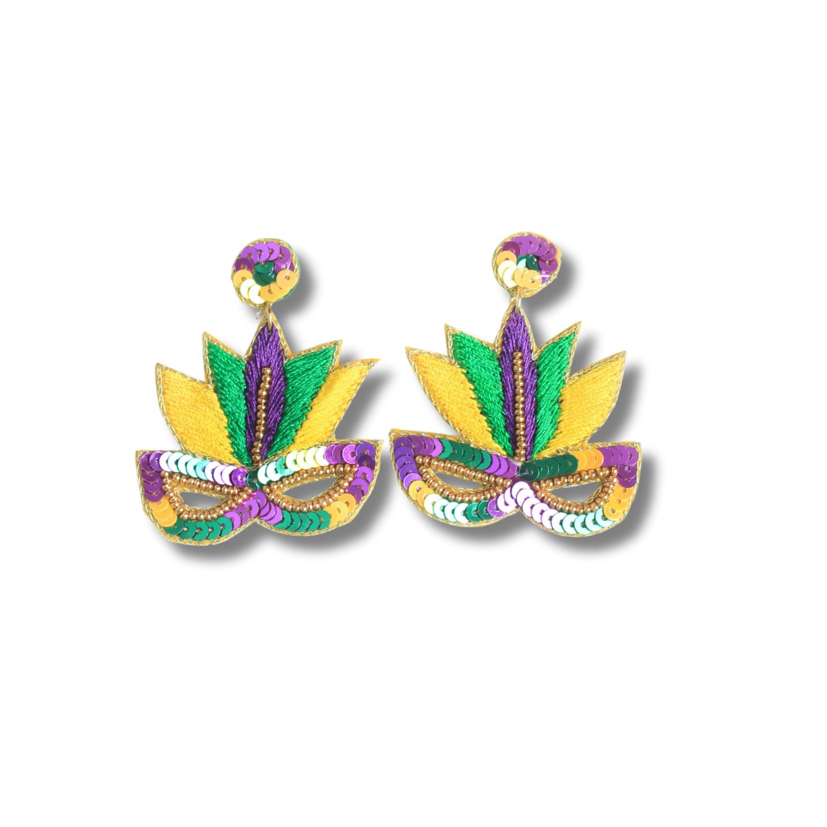 Get ready to shine this Mardi Gras season with these vibrant Mardi Gras Mask Beaded Drop Earrings. Designed in the iconic mask shape with rich, colorful beads and sequins in purple, green, and gold, these earrings add a playful and festive touch to any outfit. Perfect for parades, parties, and carnival celebrations, they bring a joyful, eye-catching flair to your ensemble. Lightweight and comfortable, they are ideal for celebrating all day long.