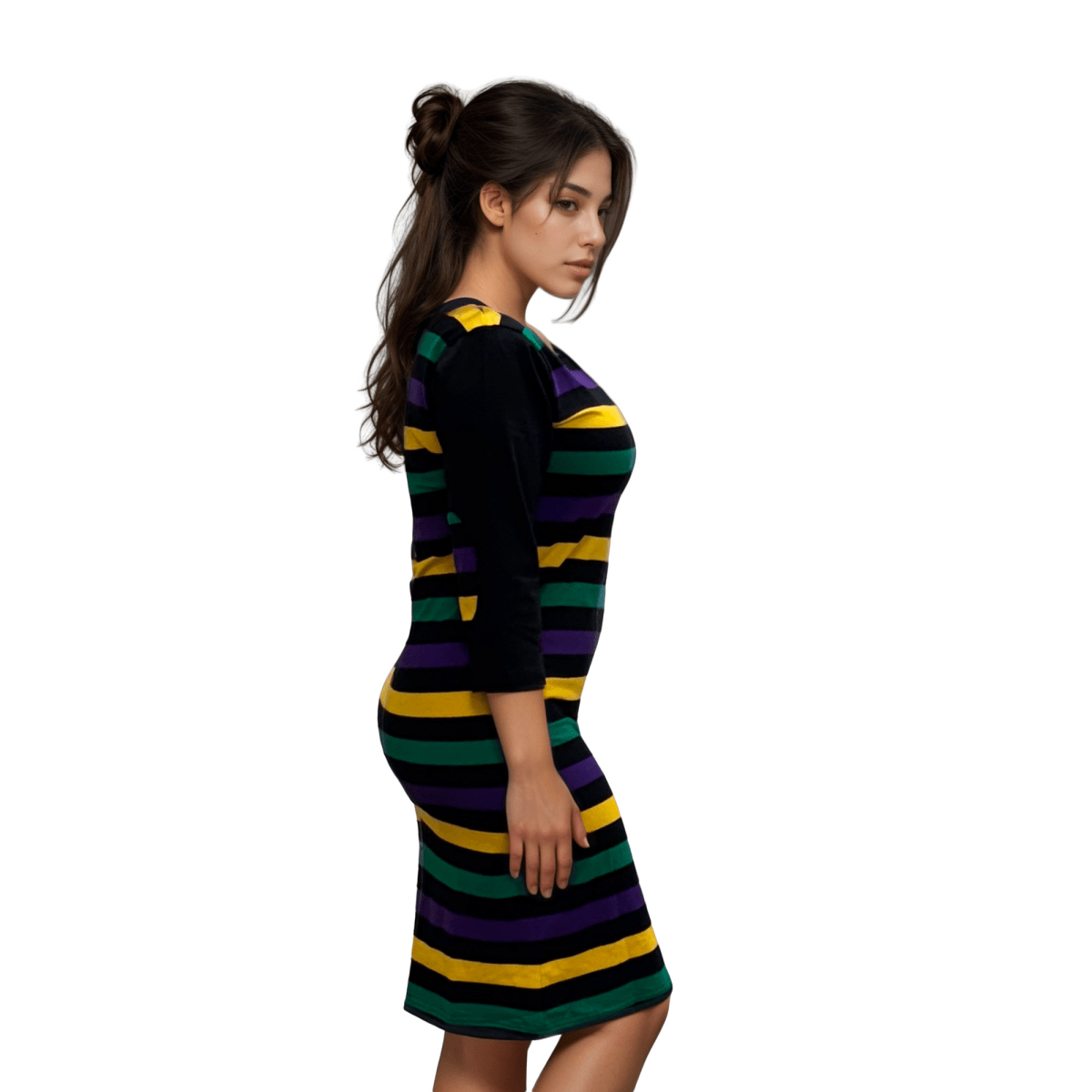 Celebrate in style with the Mardi Gras Rugby Polos Dress, featuring bold purple, green, and gold stripes that embody the festive spirit of Mardi Gras. Designed with a classic polo neckline and 3/4 length sleeves, this dress offers a sporty yet elegant look, perfect for parades, parties, and casual outings. The comfortable and breathable fabric ensures you stay stylish while enjoying the festivities.