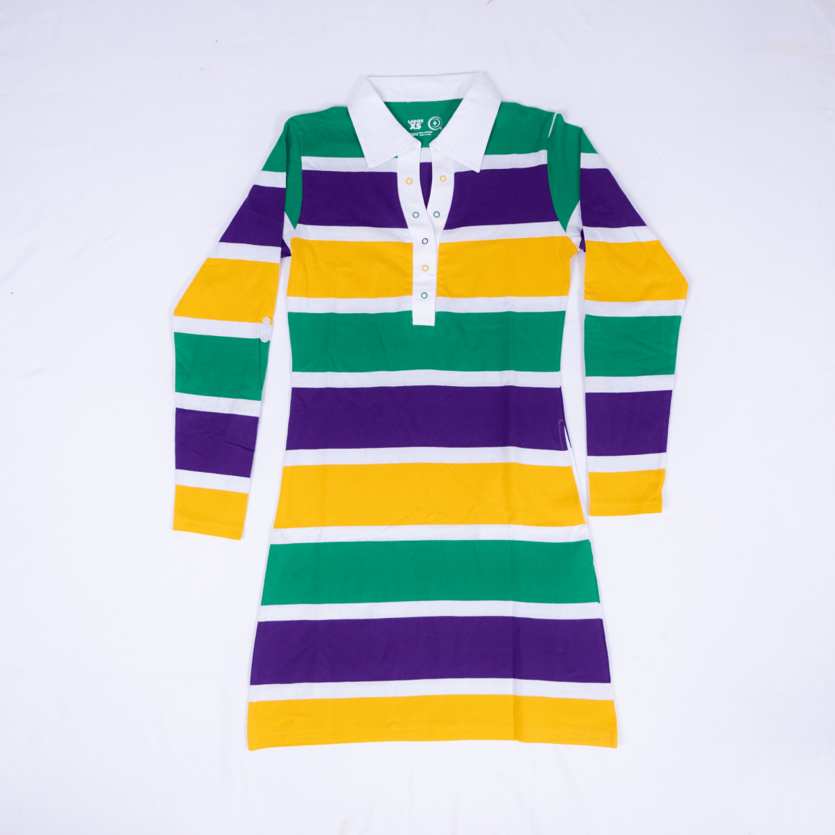 Step into the Mardi Gras spirit with style! Order your Mardi Gras Rugby Polo Dress today and make every moment festive and chic.