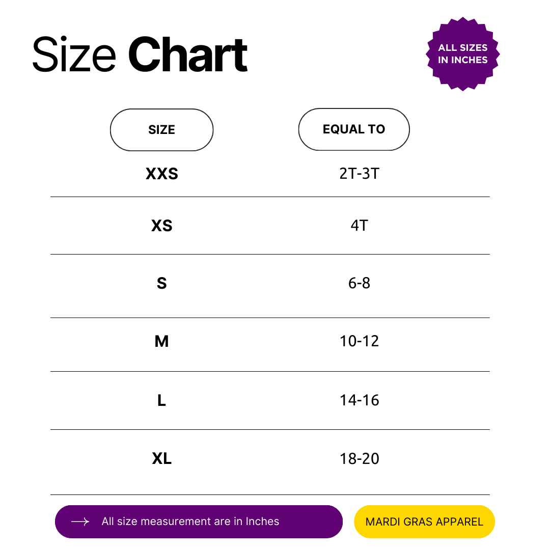 Wide Range of Sizes: Available in Youth XXS to Youth XL, this dress accommodates a variety of sizes, allowing girls of different ages to embrace the Mardi Gras spirit with the perfect fit.