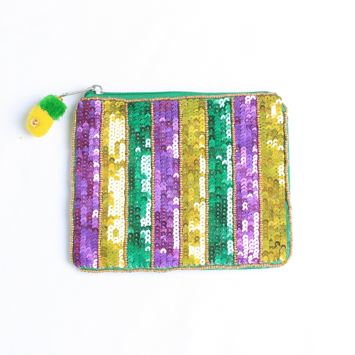 Mardi Gras Striped Sequin Pouch