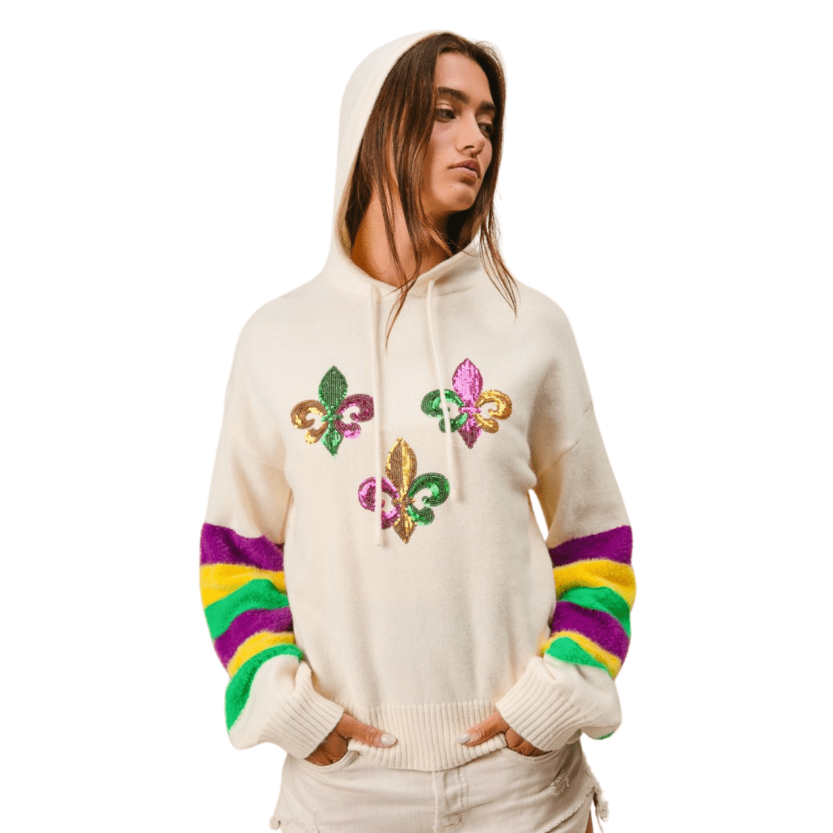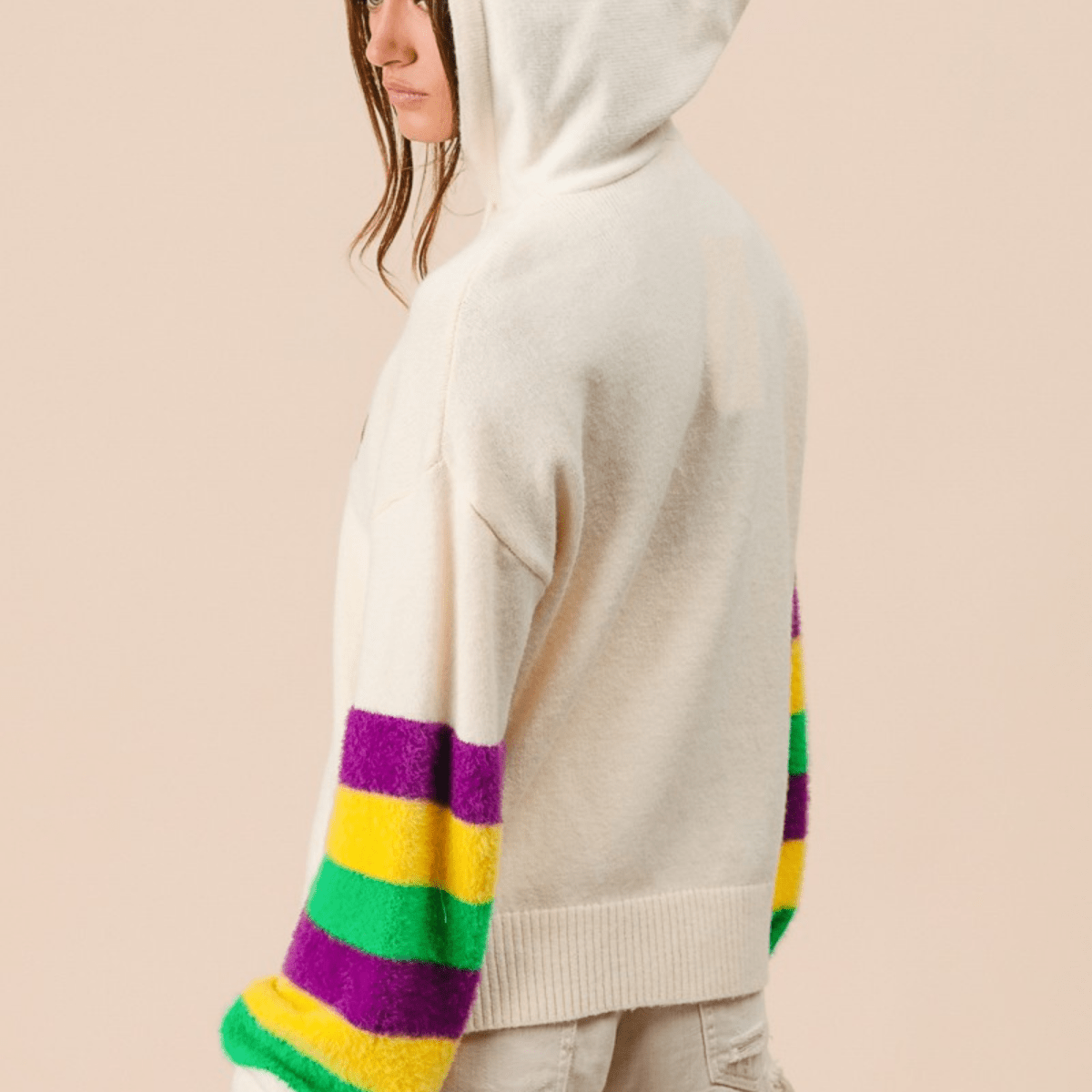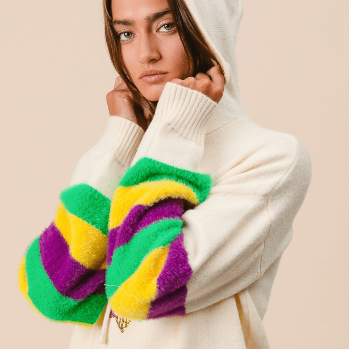 Mardi Gras Stripes Sleeve Sequin Sweater Hoodie