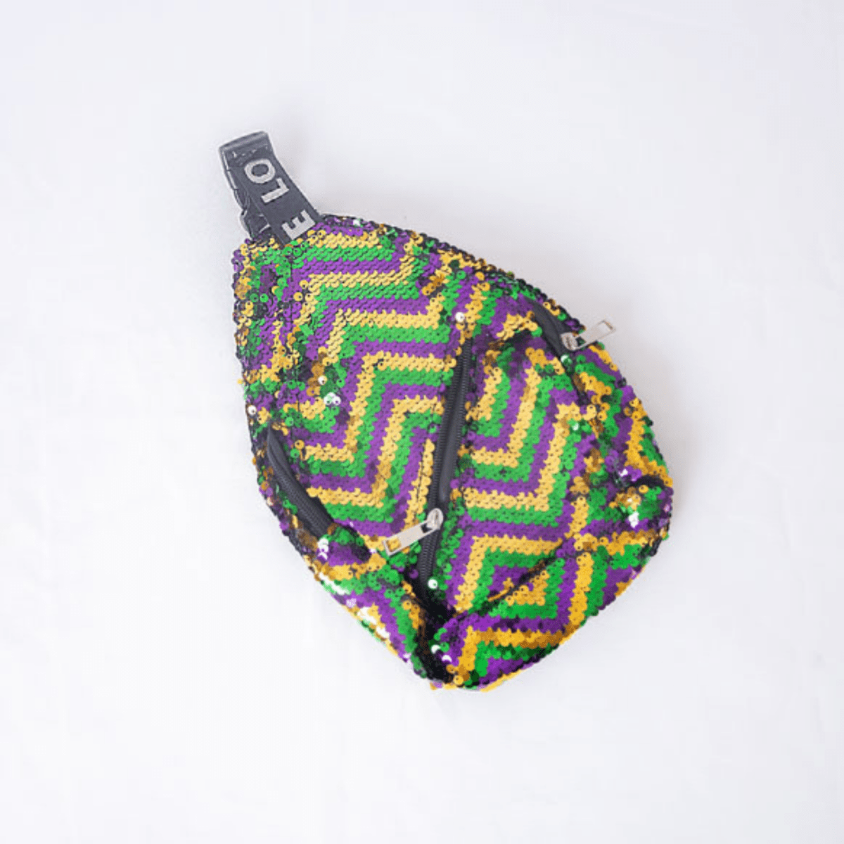 Celebrate Mardi Gras in style with the Zigzag Sequin Crossbody Backpack! Order now and enjoy a perfect mix of fashion and functionality for all your festive events!
