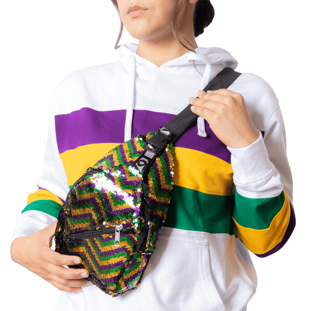 Pair this crossbody backpack with your Mardi Gras outfit for a functional and festive accessory. Perfect for keeping your hands free while you enjoy parades and parties.