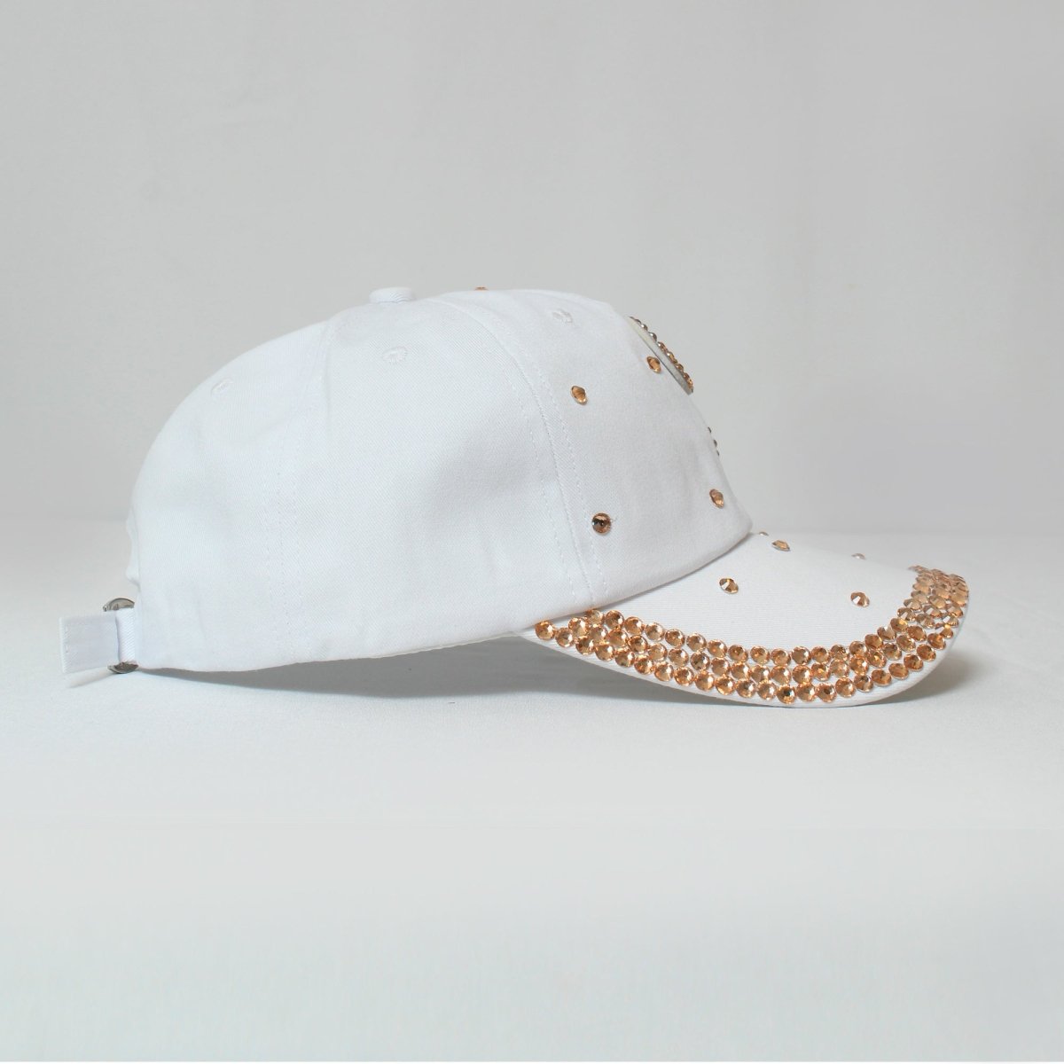 White Fleur De Lis Gold Crystal Embellished Cap